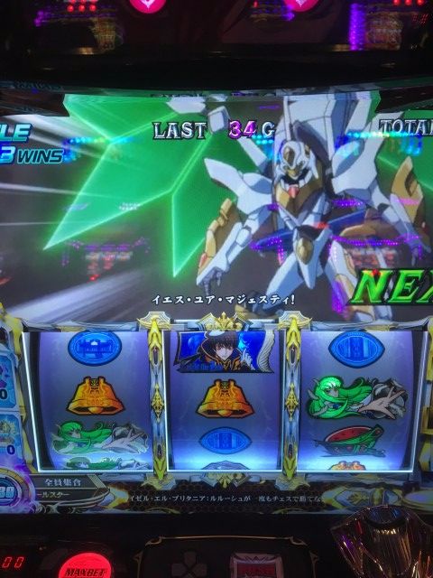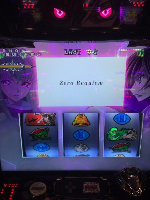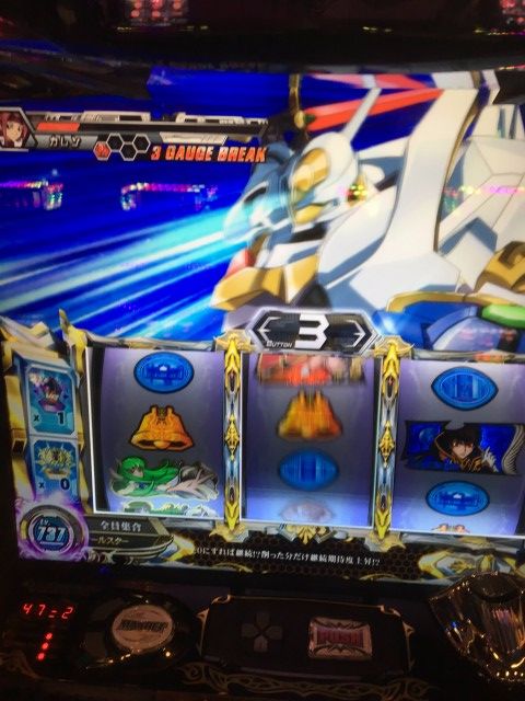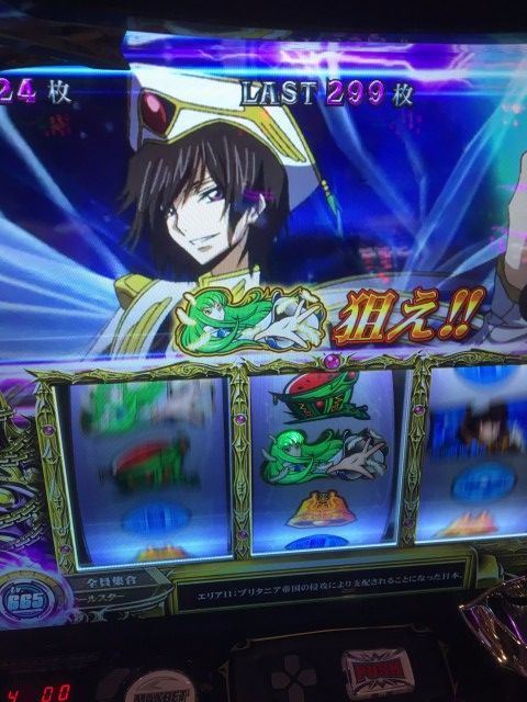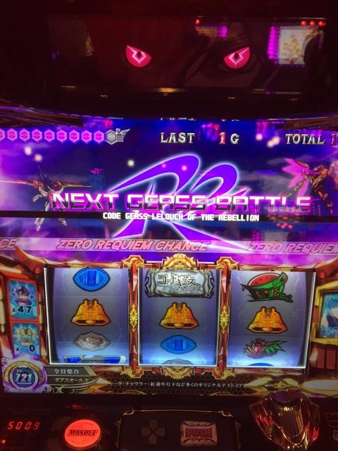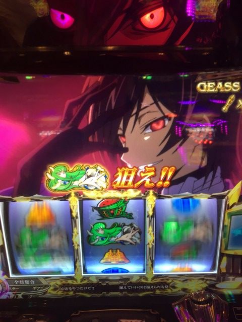 今回のギアスはボーナス同時当選した際の演出書き換えがないため、演出中にボーナスを引くとこの様にプレミアチャンスになります。マイスロミッションなど埋めたい人はすぐに揃えないのもいいかもしれません。コインロスするけどねw