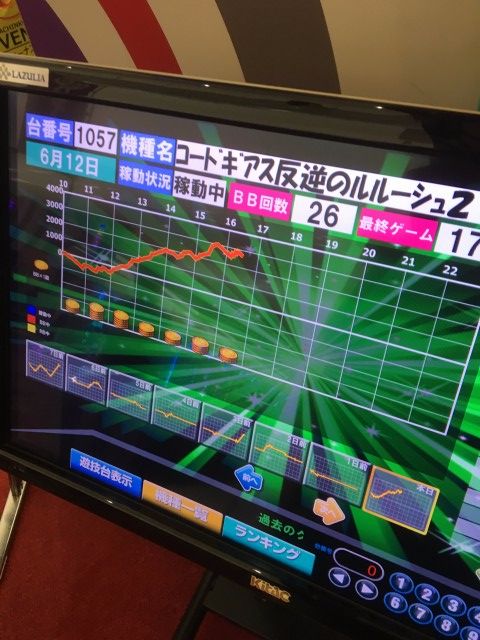 さて店内ですが、僕が打っていたギアスがその後も順調に出玉を伸ばしていましたね←