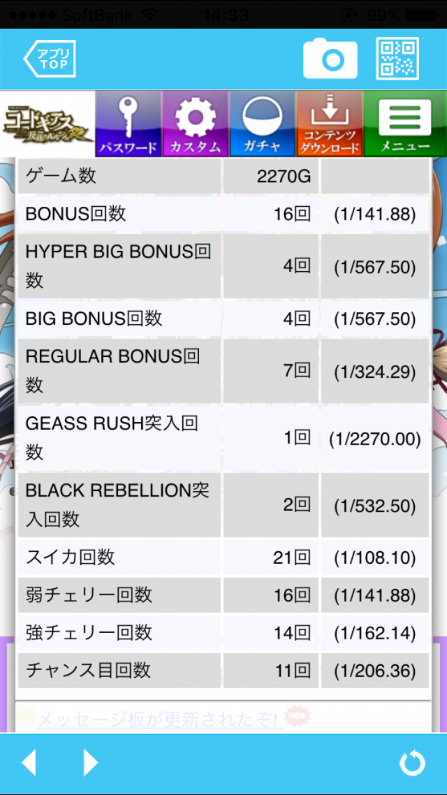 いやーやっと引けましたギアスラッシュ!ベルを4回獲得するまでC.C図柄が高確率で揃う特化ボーナスですね!