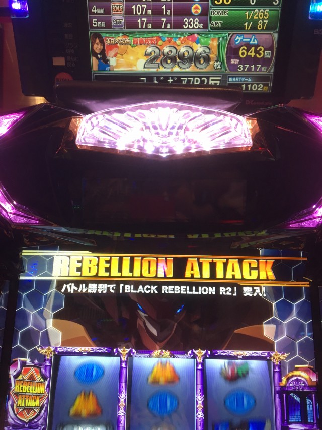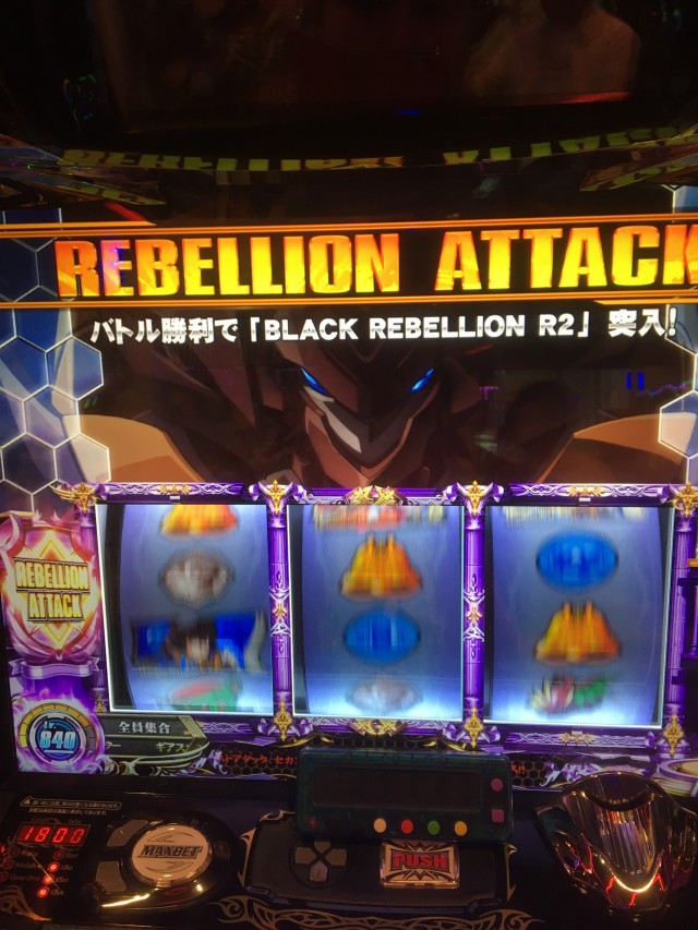 朝一は変更の恩恵だったのか強チェリー1発でリベリオンアタックへ、実践上ですが大事なのはリベリオンアタックに突入するまでの演出かなと