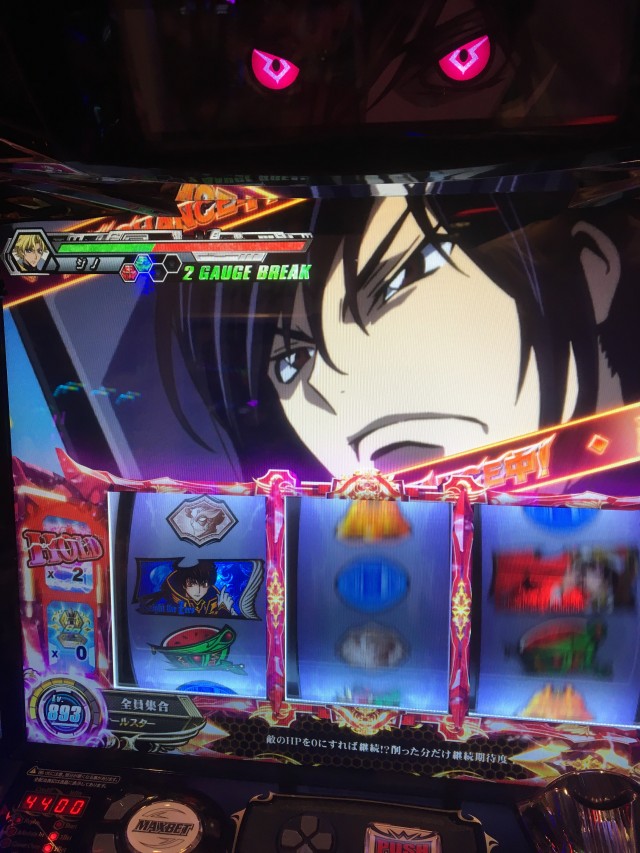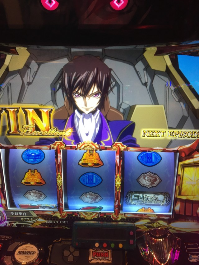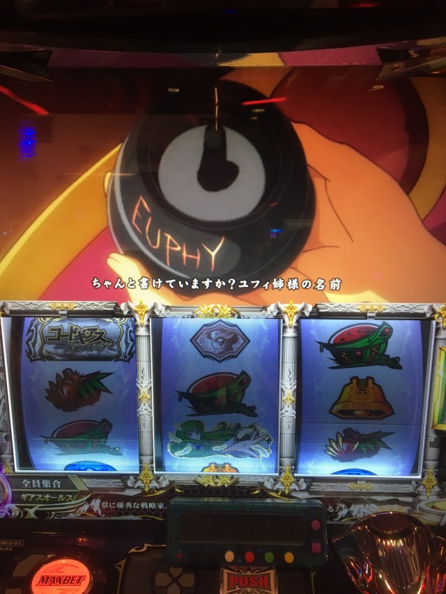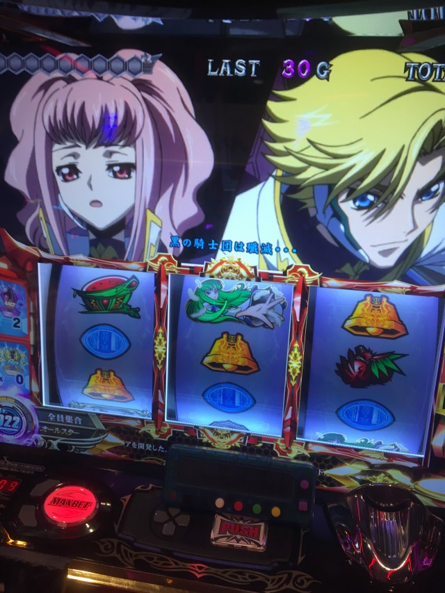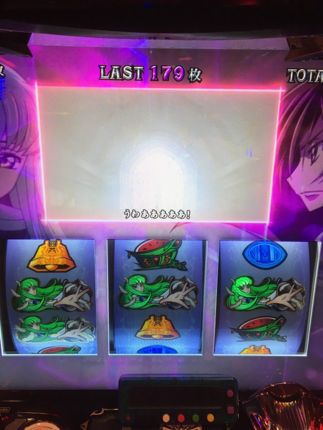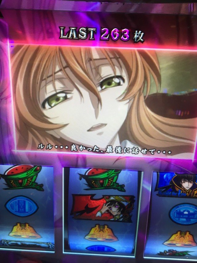 この日のギアスはとにかく弱役からのポイント獲得が多かった気がします(レア役入賞時筐体上ルルの目発行)