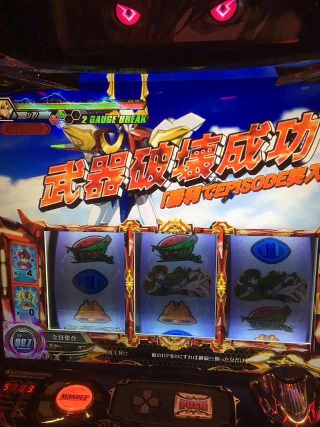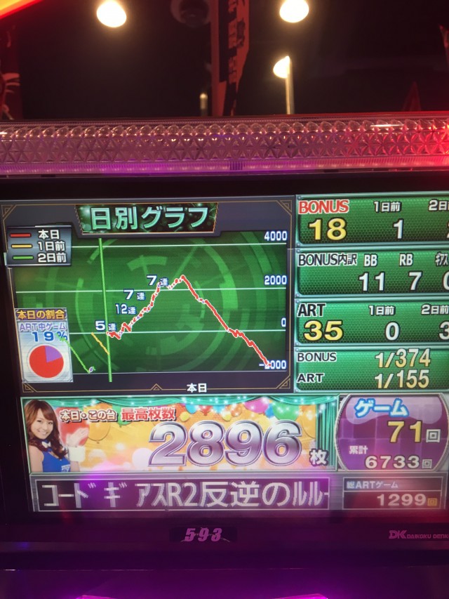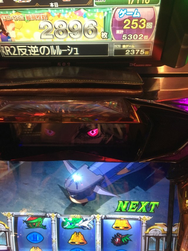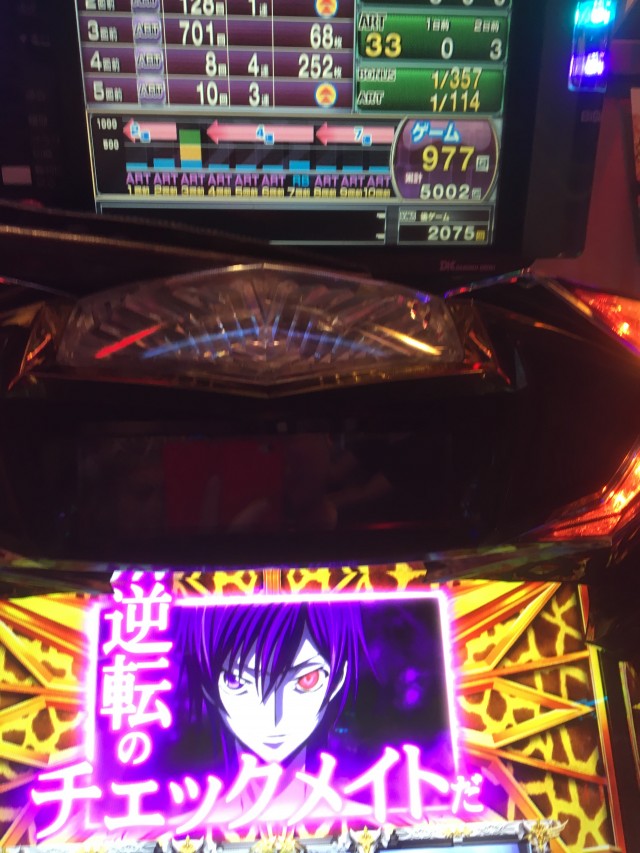 天井へもいってしまう始末、ギアスの天井はボーナスorART間1000GなのでこれはART間1000Gの方でしたね。そして時は過ぎまして