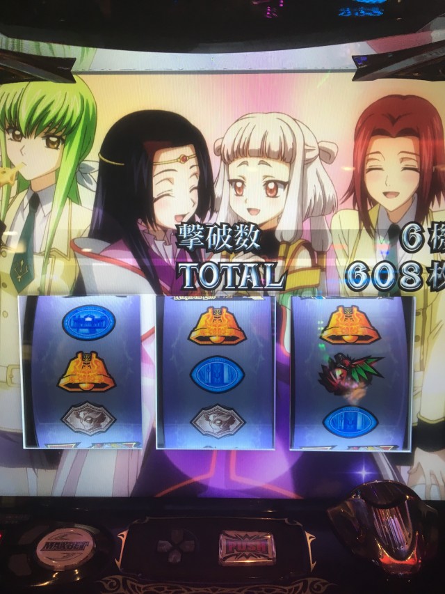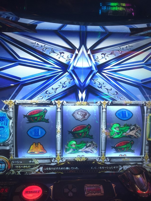 ルルーシュの目が紫色に変化したらRAorボーナス濃厚なので失敗時の引き戻しに再度当選しましたね。いよいよ6の匂いがしてきました・・そしてこのRAでようやく!