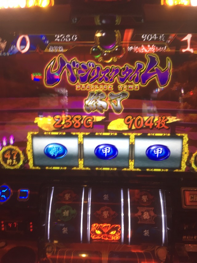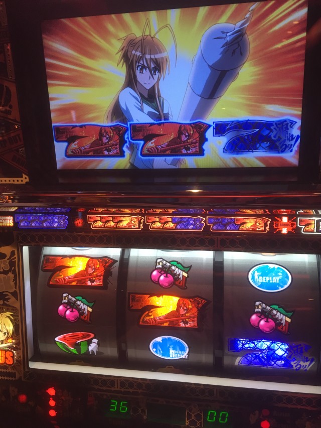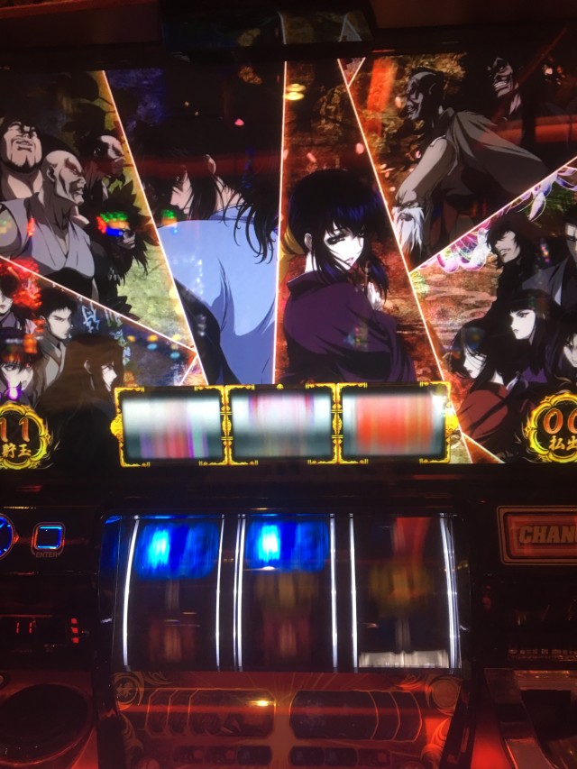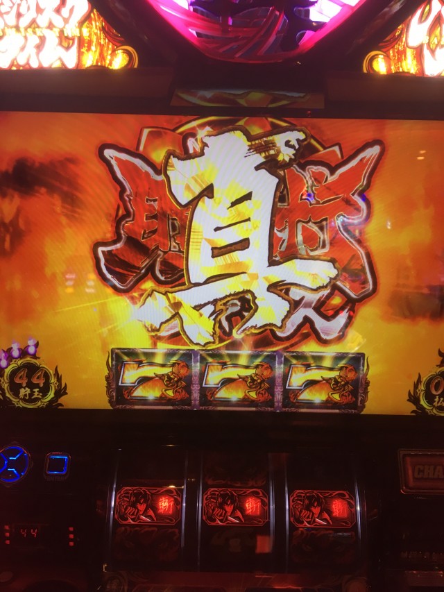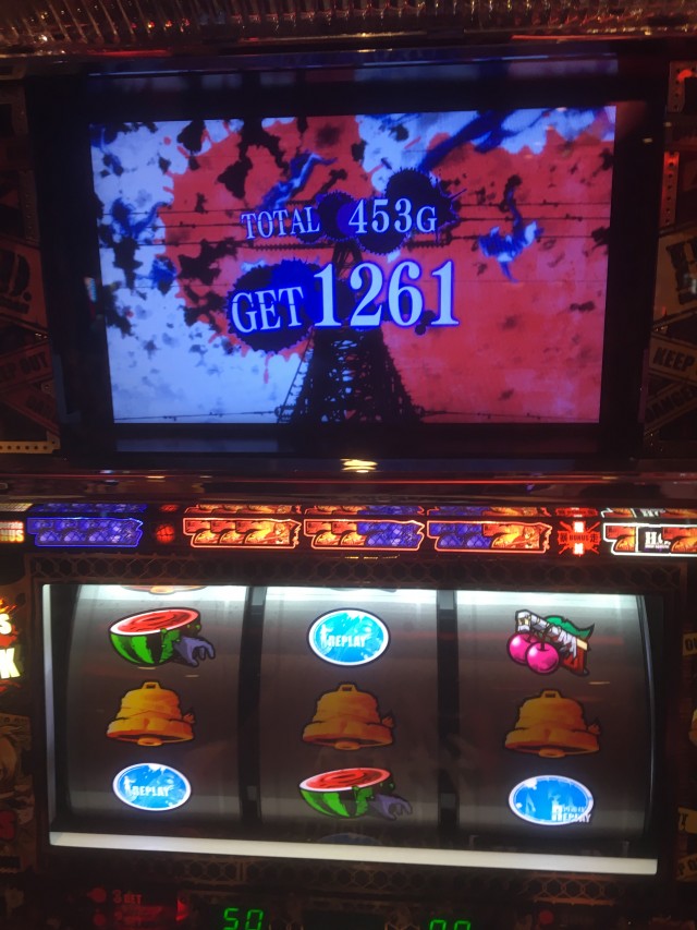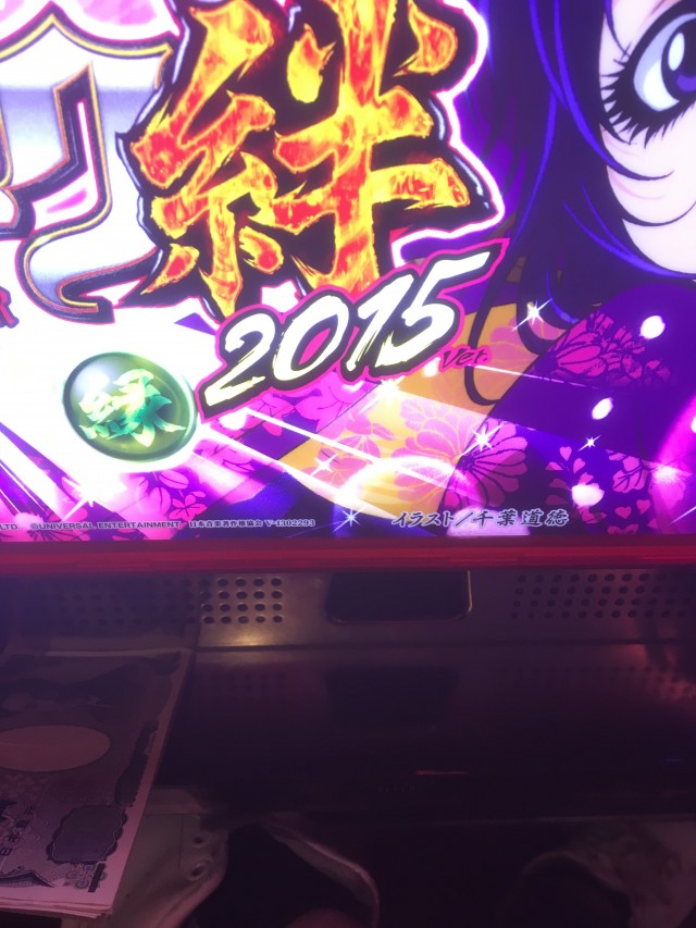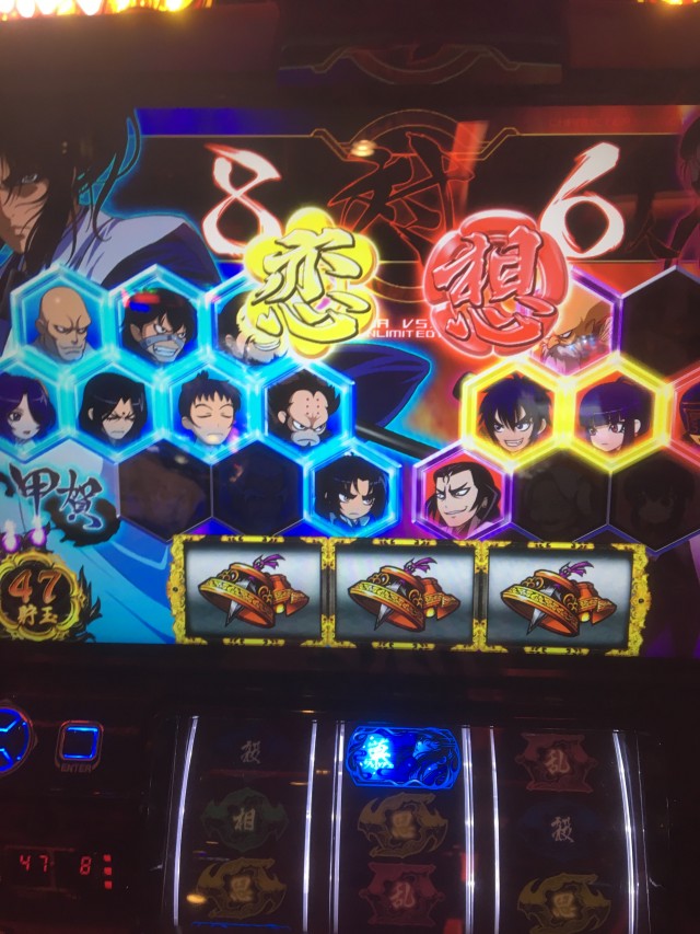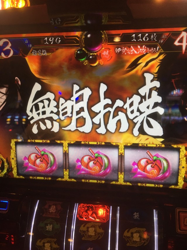 これの当たりが弱チェリーなのですが、当たり方が変だったのでパネル消灯しそうだなーと思いカメラを起動しながらレバーを叩いたら本当に無双一閃でしたw