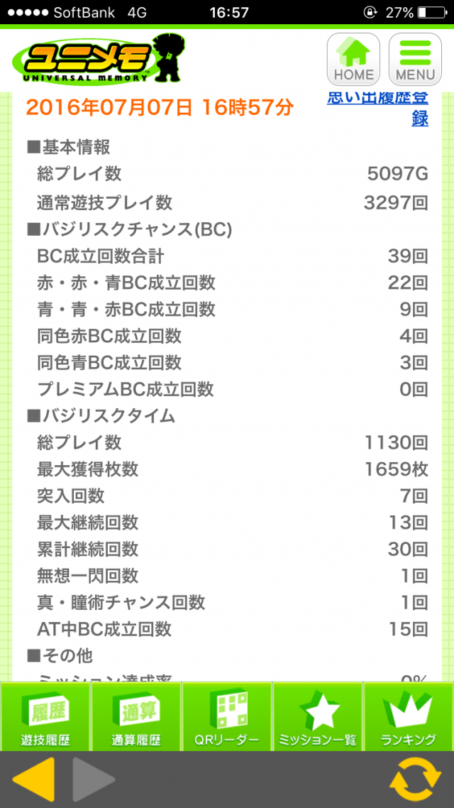 BCの色という部分を見ると偶数よりですね、あまりあてにしてないんですが、これだけ回して謎同色や変わった出来事なども起きていないので純粋に低設定なのでしょう。予想設定は2です。