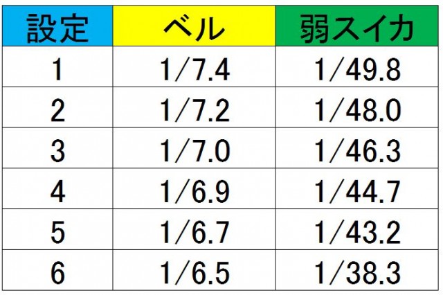 エヴァ生命小役確率(ベル・スイカだけ抜粋)