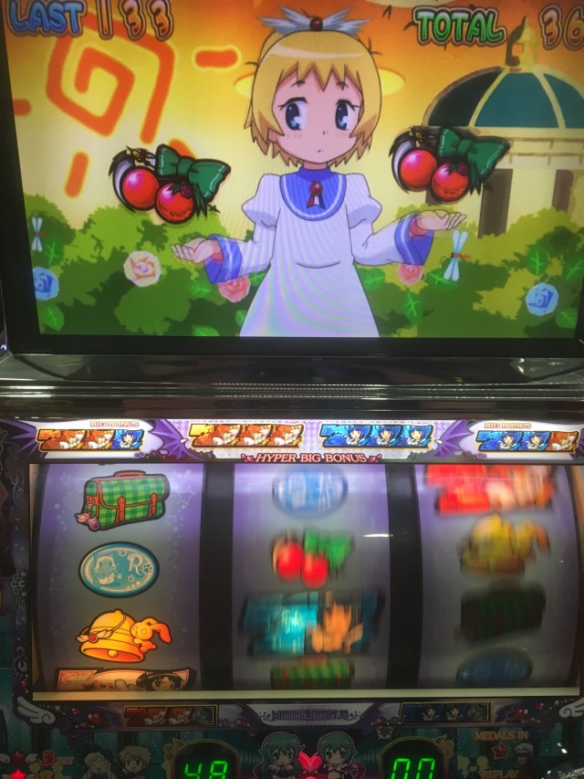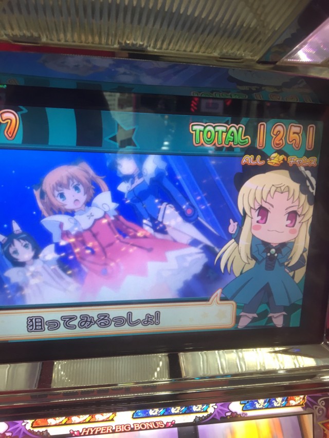 お次はボーナス後の準備状態で中チャンス目を引いた次Gにこれ!本来であればここでリリカ(金髪幼女)が連れていかれる場面なんですよね。