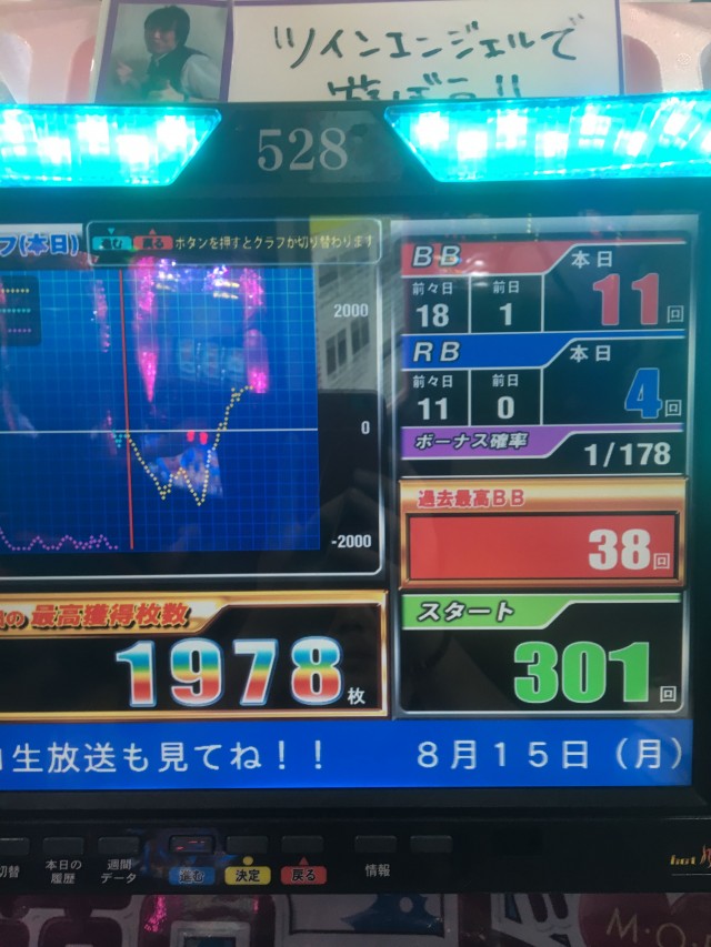 ボーナスも絡みそこそこの出玉になりましたね、捲りまでもう少しという所
