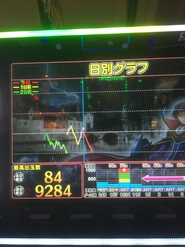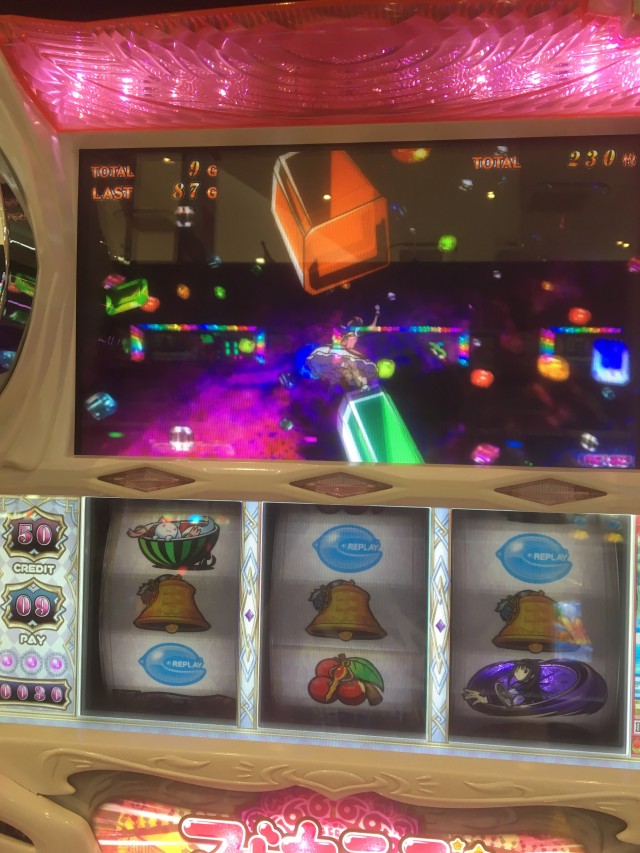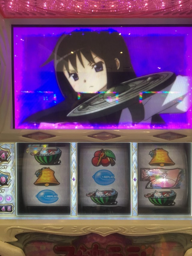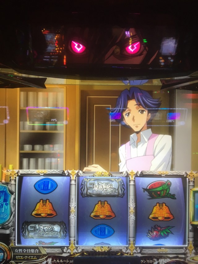 ベルが揃ってのルルーシュの目がついたので7pt以上が確定、おそらく設定変更時に5ptが選ばれたのでしょう。