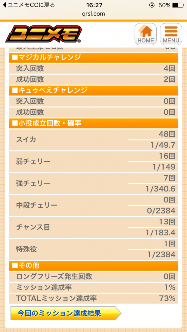時間的にもタイムアップだったのでヤメました。弱チェリーぇ・・モード移行は悪くない印象だったので上だと思ってましたが流石にこの小役は弱いかもしれませんねぇ