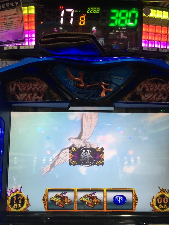 絆は僕が右2を打っていたのですが、左角が2連続でBT間0でBTへ行き両方とも朧開始画面(継続率50%以上)なのを目撃