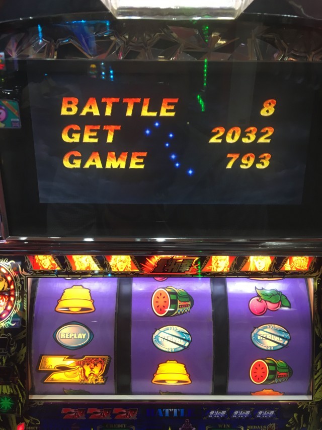 結局次のバトルで負けてしまいましたがG数を乗せながら頑張れたため一撃2000枚を獲得。