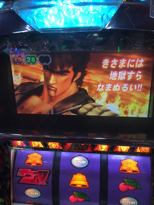 ART突入リプレイ(小山方のリプレイ)を引く前に下段リプレイ入賞時に右の拳王ランプがつけば拳王乱舞確定となります。ここが一番ヒリつくところ・・