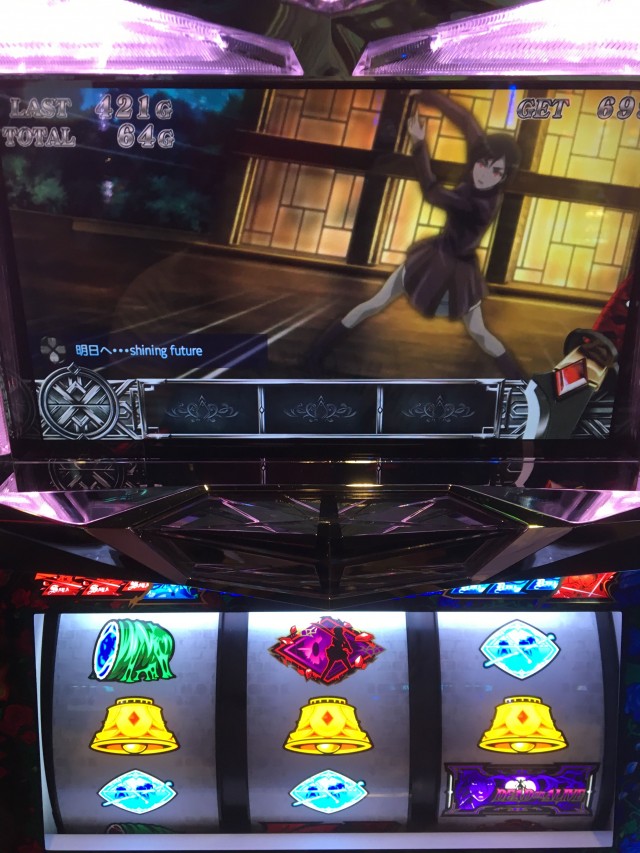 初打ちなので良く分からず打っているとチャンス目らしきもの(分かってない)からボーナス当選し、ボーナス中の7揃いでARTも何故か獲得(゚∀゚)ラッキー