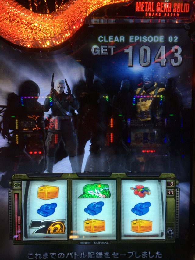 既にガルパンの全、ギアスとハーデスの1/3などが見えており後ツモは難しい状態になったので期待値狙いでメタルギアソリッドの430Gから、500GのCZ狙いですね。