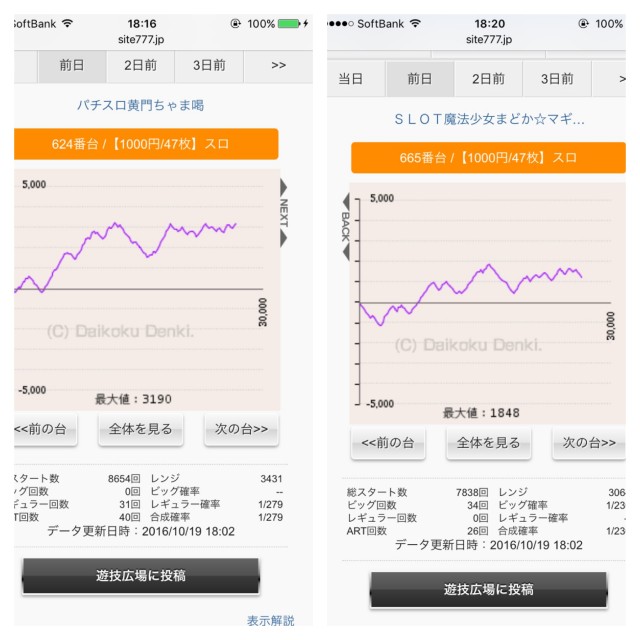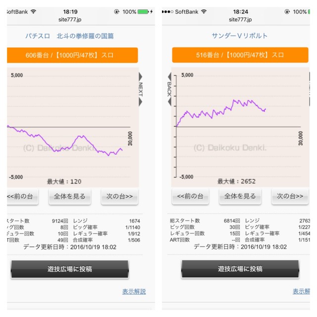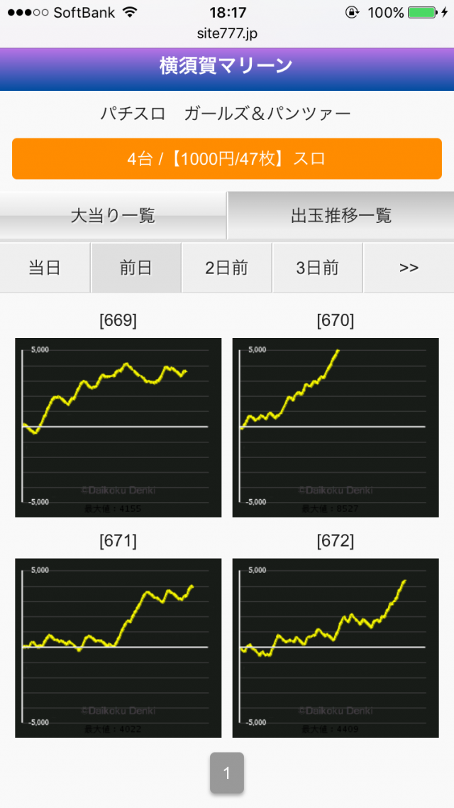 その他単品かなーという台もこんな感じで粘り切り、17時頃でこれなので夜にはもっと出てそうですな。いったんここで店から出て翌日データサイトで確認したのがコチラ