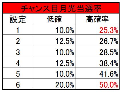 まず大きくあるのが「小役確率」と「高確チャンス目からの月光当選」ですね。