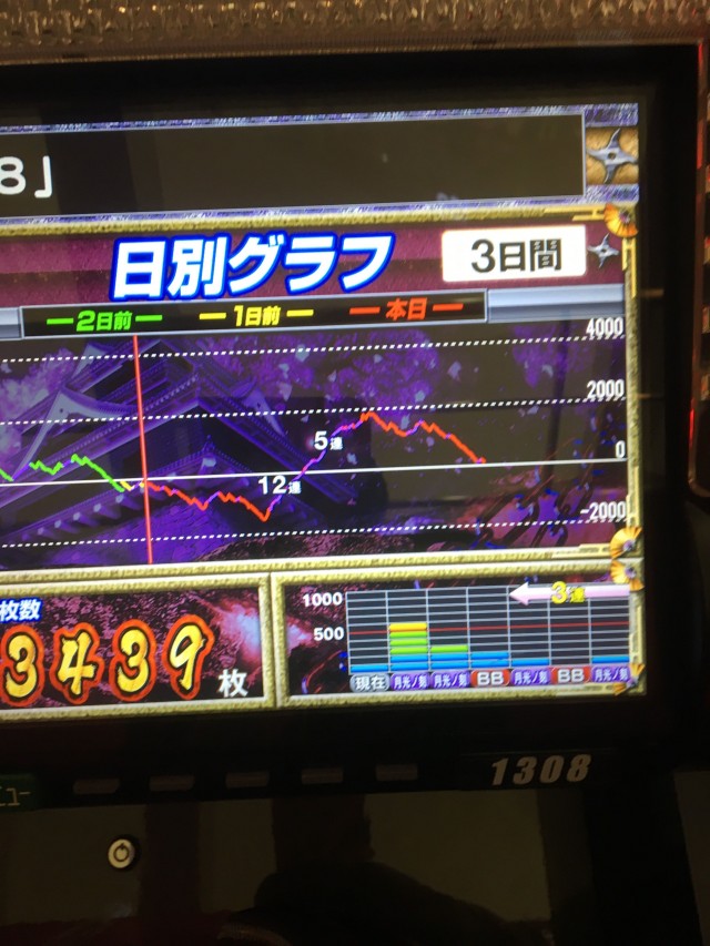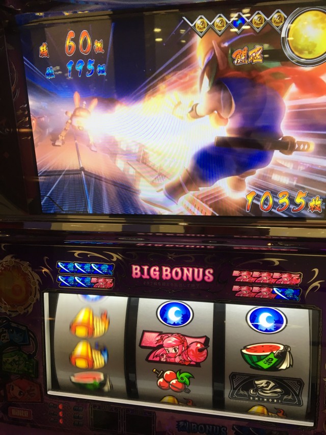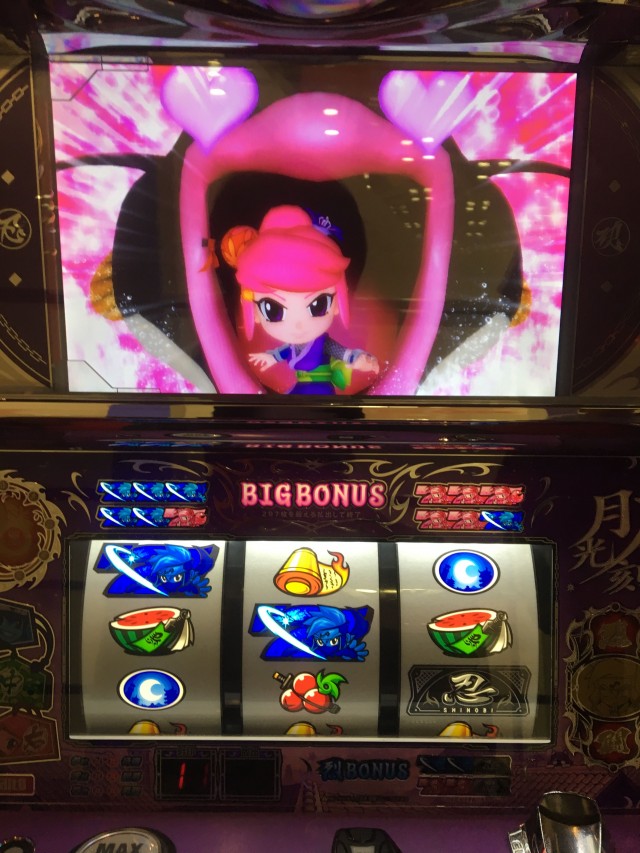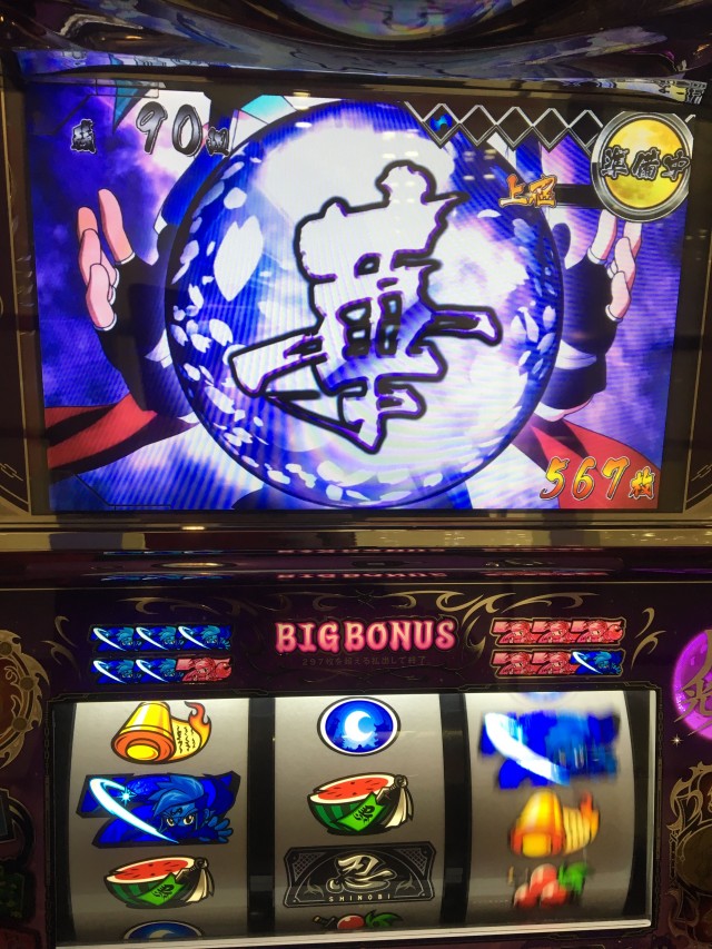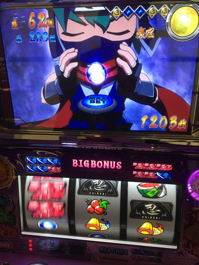 この時点で小役確率もいい感じで隣の忍も挙動良し(2台設置)で怪しい匂いが出てきましたねw