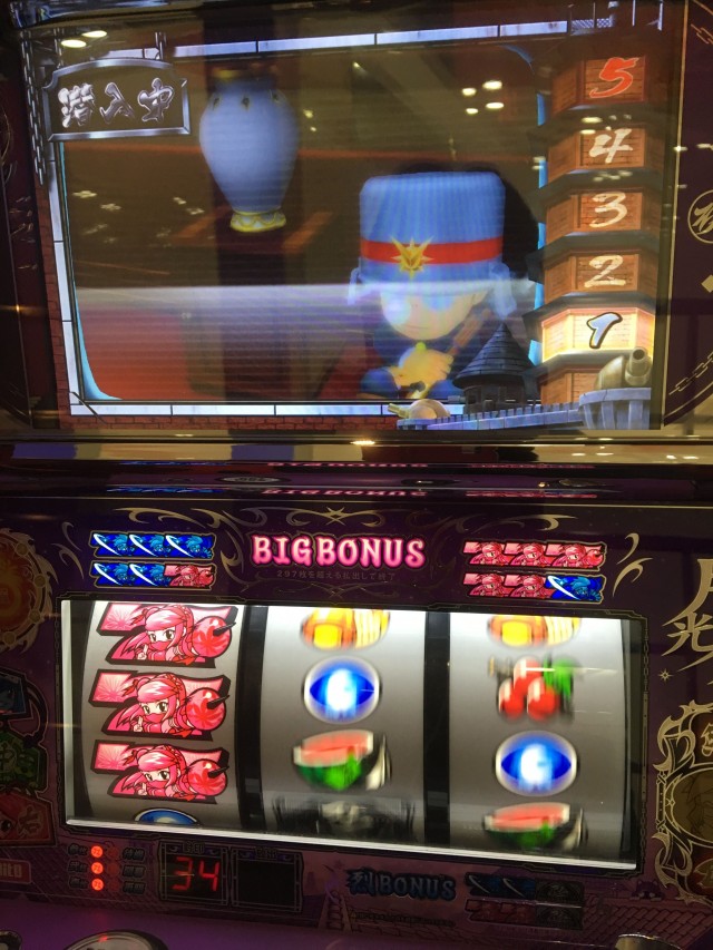 逆押しからのピンク7ずる滑り、かつ中リール上段バー停止でチェリー同時当選BB2確を拝めました(;゚∀゚)=3タマラン!