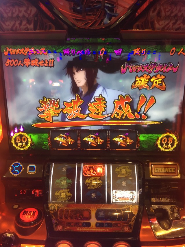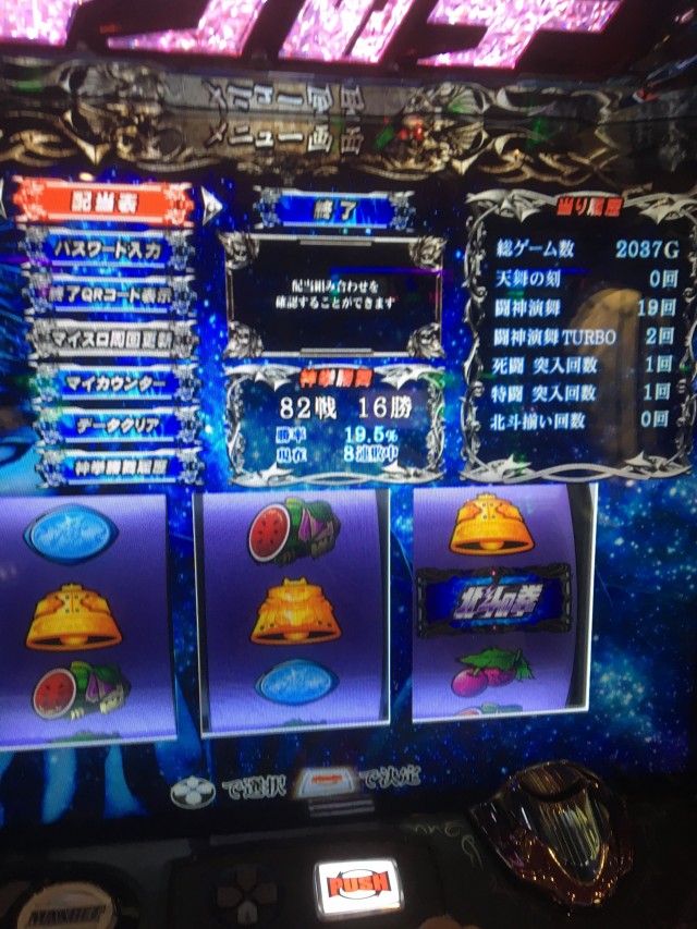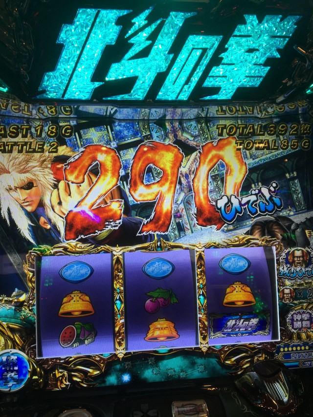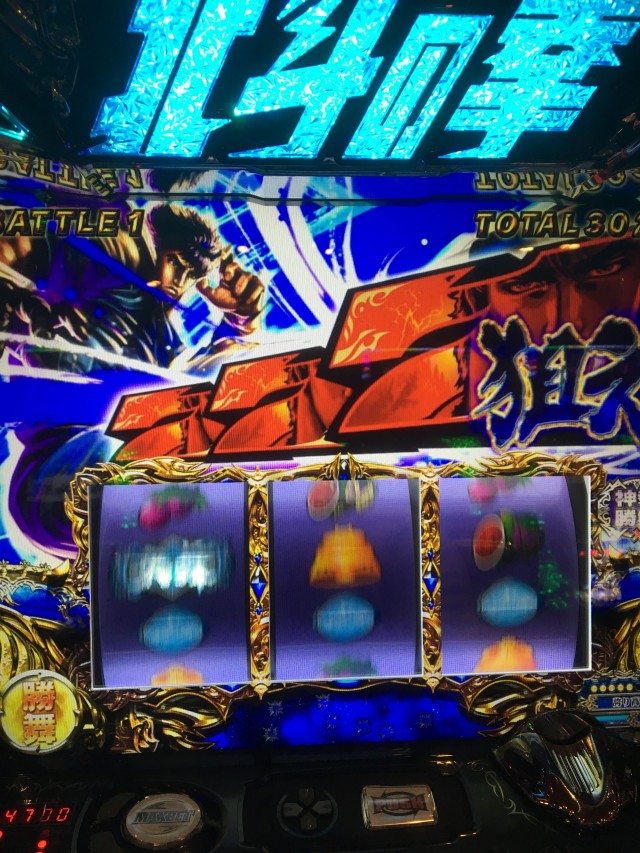 そこからこんな履歴の北斗修羅へ、天舞の刻を引かずの初当たりで1/250前後なので移動しました。