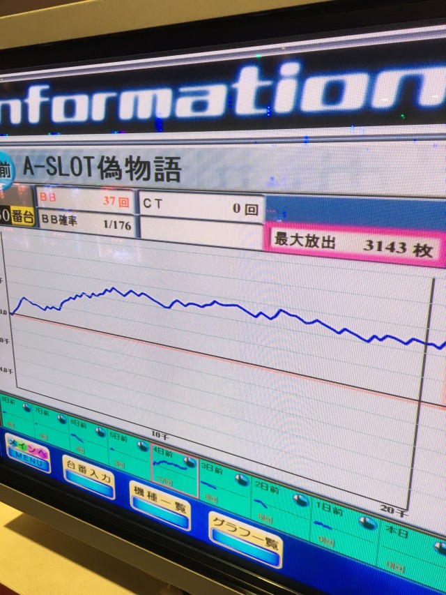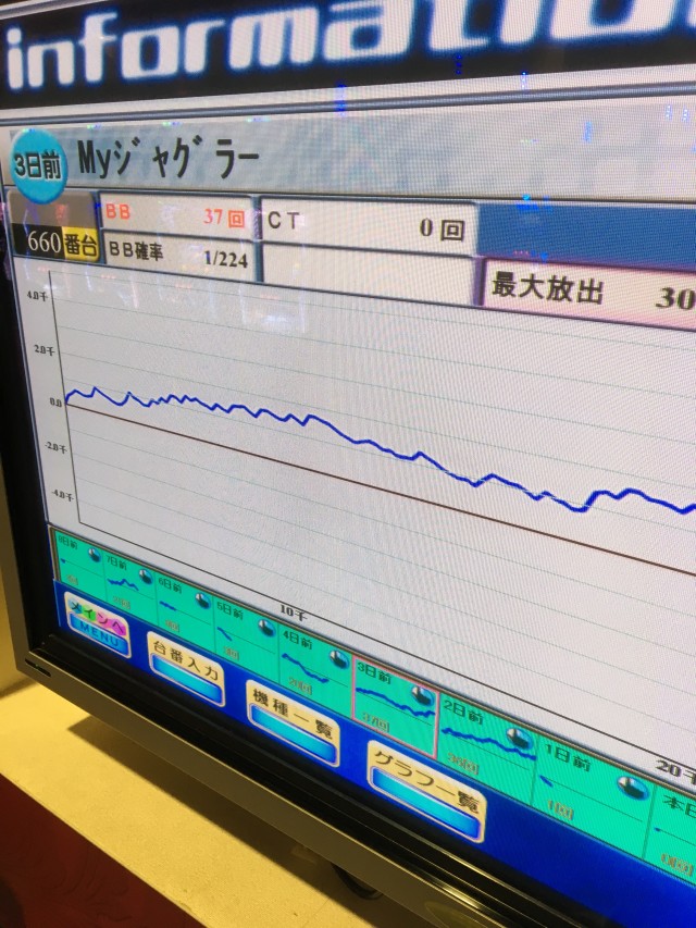 その他ジャグラーにも昼過ぎから回されての良さげな台や、これパチンコ打ってた方がもしや良かったの?という慶次の積み方を見つつデータロボをポチポチ