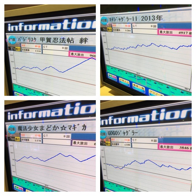 メイン機種、ジャグラー、まどマギあたりは回転数からも粘られてるなーというのが見えたので今度は1のつく日も改めて見にきたいと思います~