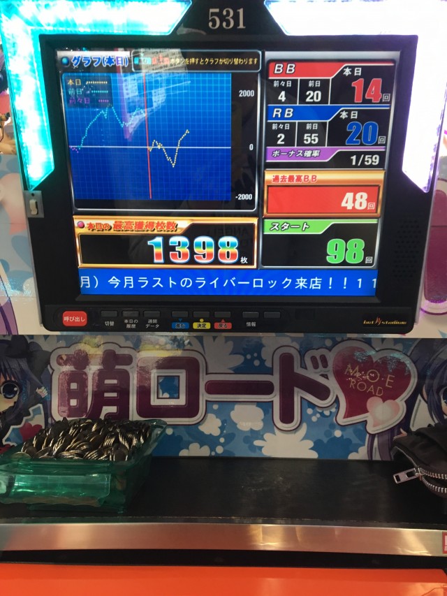 王道の萌スロ、メイン機種が強くこの日はノーマルタイプも強めとのことでしたね。