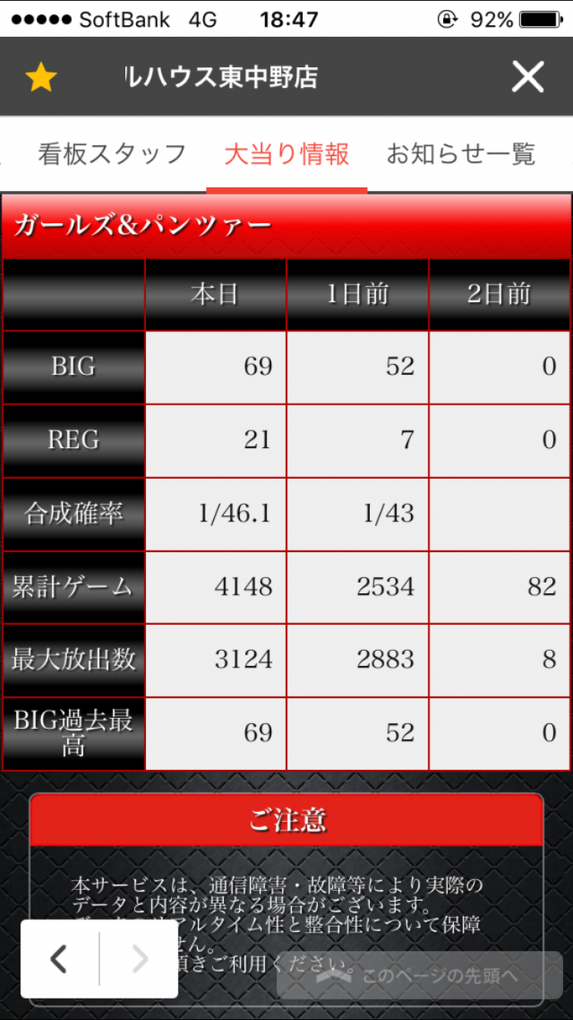 ↑は営業中にガルパンのデータを見たものなんですが・・前日も強くない?と感じまして