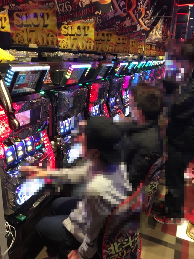 店内はジャグラーを除いてほぼフル稼動、「打つもんないしここでジャグラー!」とすぐに攻めるのは個人的に危険だと思うのでしばらく徘徊しパチンコへ移動し北斗無双へ着席!
