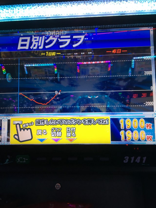 ここでようやくピークタイムを上手く繋ぎ1G連を獲得(;・∀・)いやはや長かった。