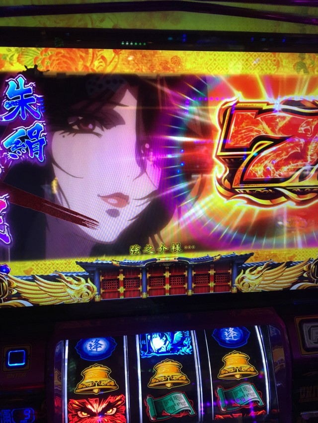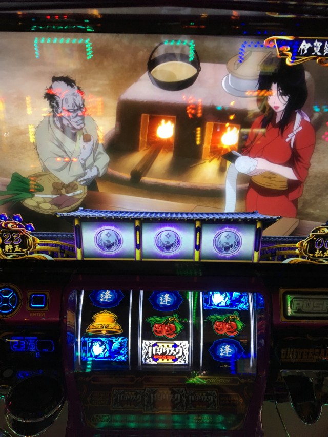 こっそり覗いている朧ちゃんと熱い出目(中押しで強チェリー2確目状態)