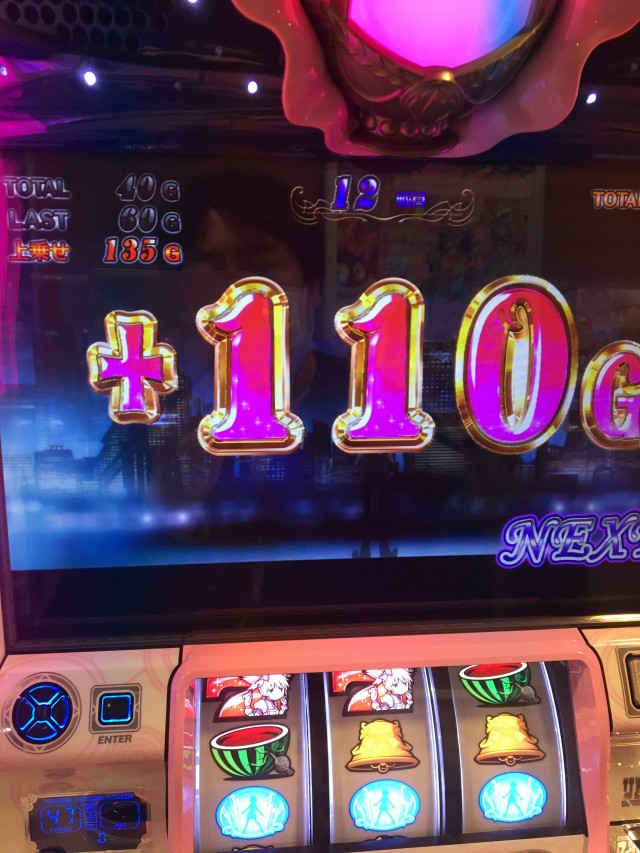 スイカからのG数が長かったので、超高確での押し順ベルからのCZ当選が濃厚。