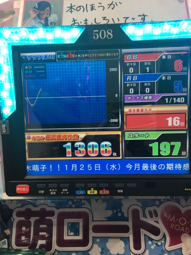 萌ロード(萌スロバラエティ)でのフェイクだったり単品の当たりはこんな感じ、ツイン3は終日打ち切られていました。何番が取ったのかは不明ですw