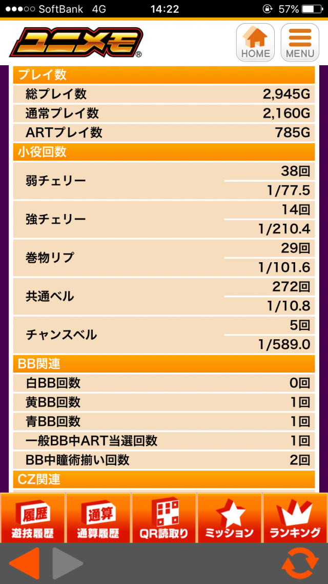 一発目のCZは何も引かずに最後まで連れていかれて当選、タイミングよく弱チェリーで高確に上がっていた可能性が高いのでCZ確定だったかもしれませせんね。