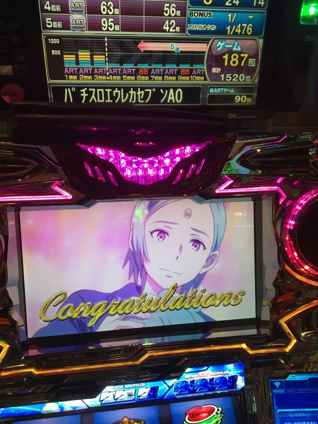 アリア2を打つもそこまでの回転数だったため離脱、毎回くる時北斗無双島が強く見えるので空いている台へ着席