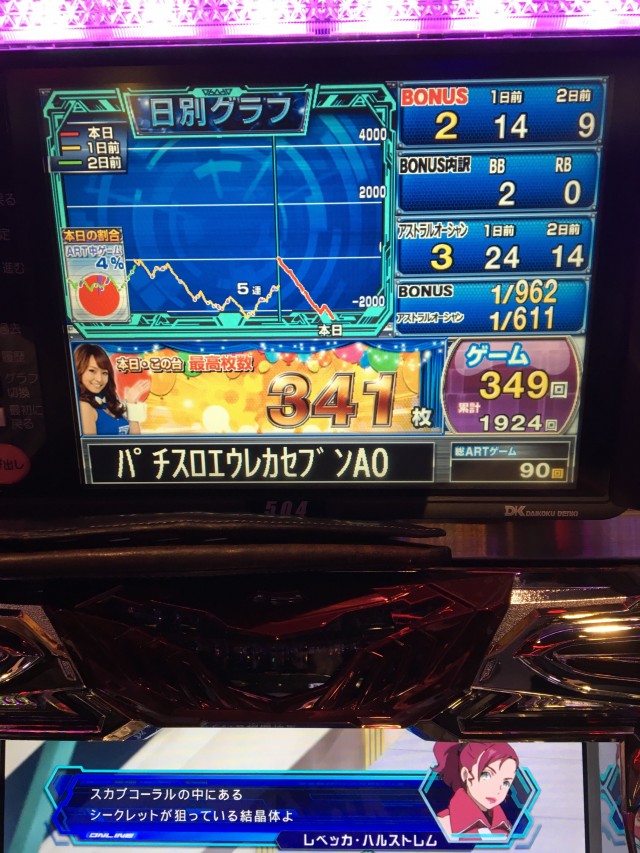 データサイトを後日見てみたところ、当日強かったガルパンが翌日もフル稼動してましたね、通っている人いわく翌日もおいしいと言っていましたねw