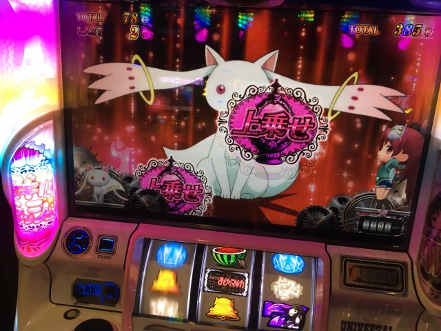 ARTも残り数Gの所で赤背景のキュウベエが出たので中押し・・