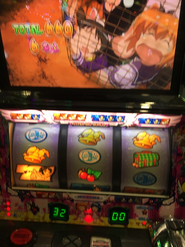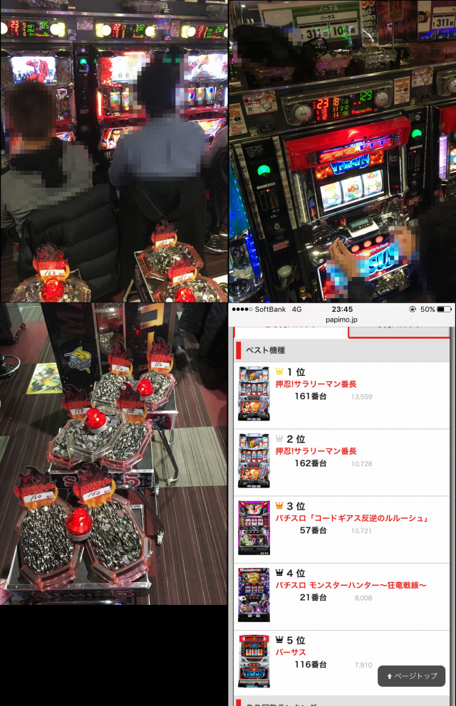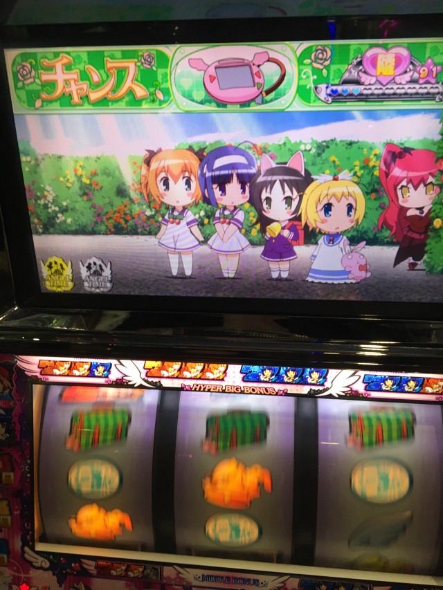 パチスロの稼動が全く落ちず空きがあまりない状態なのと当たり機種であろう箇所がしっかり見えていましたね。