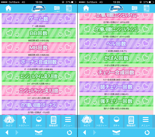 ここら辺ですかね?小役はブレる数値なので無視、特定ボーナスと強チャンス目同時当選関連などは毎回気を付けて打ってますね。