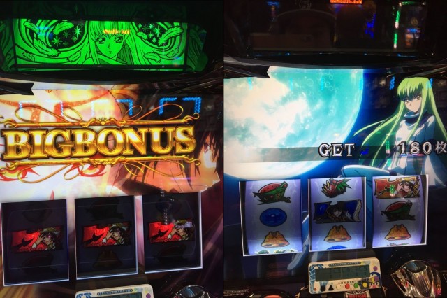 朝一は早々にスイカからBB!更に2回目のボーナスでC.C終了画面が出現