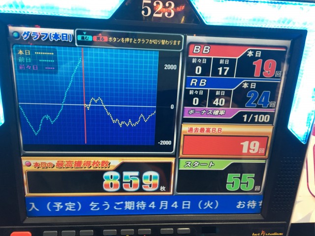 推定設定は6、両隣にある乙女2とガルパンが高設定挙動凄かったので並び高設定の当たり機種だったと思いますw