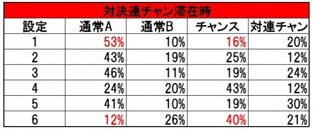 基本的に対決連荘モードはそこまで高いループ率を持っていません、ただ通常時と頂中とではモード移行の振り分けが異なりますので注意です。