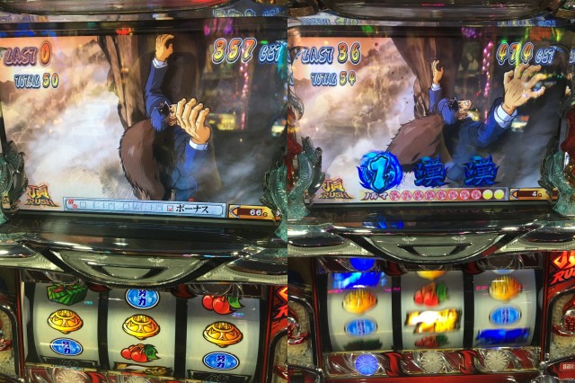 普段であればめんこやバトミントン、大相撲という弱対決中にどうにか小役を引いて繋げていく感覚ですが。