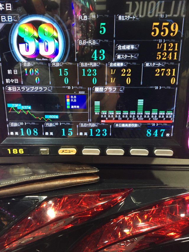 小役やボーナス中などを見ても設定5の方が強く見えた段階・・投資は43kという所