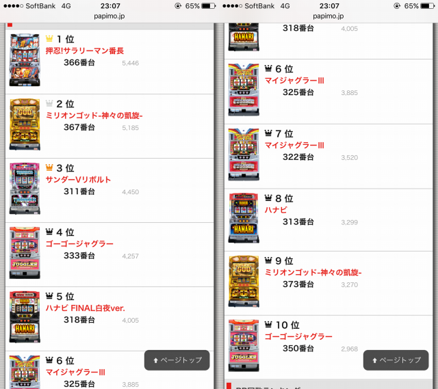 データサイトから閉店時にデータはこんな感じでしたね、ランキングもノーマル中心に出てくれてましたね!