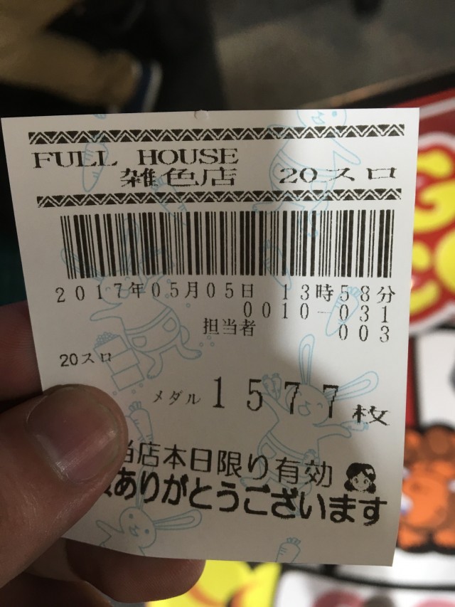 この日は5月5日という事でフルハウス雑色店にて稼動してきました。