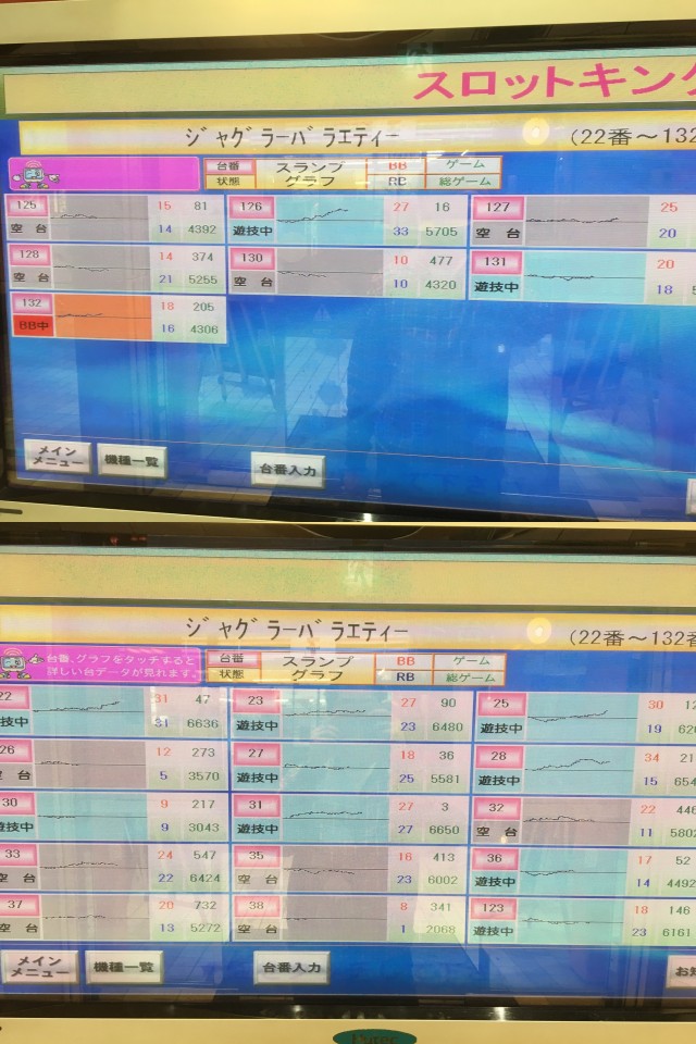2フロアなスロットキングでは2Fにバラエティがあるのですが、バジ2がこぜ6挙動してて凄かったです。それに追随して横と背中がBOXのような出方をしていたので固まって粘られていました。