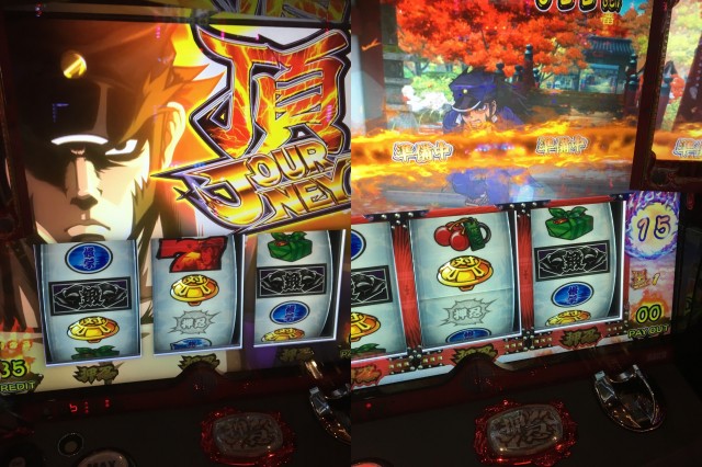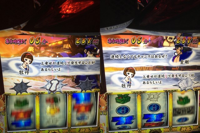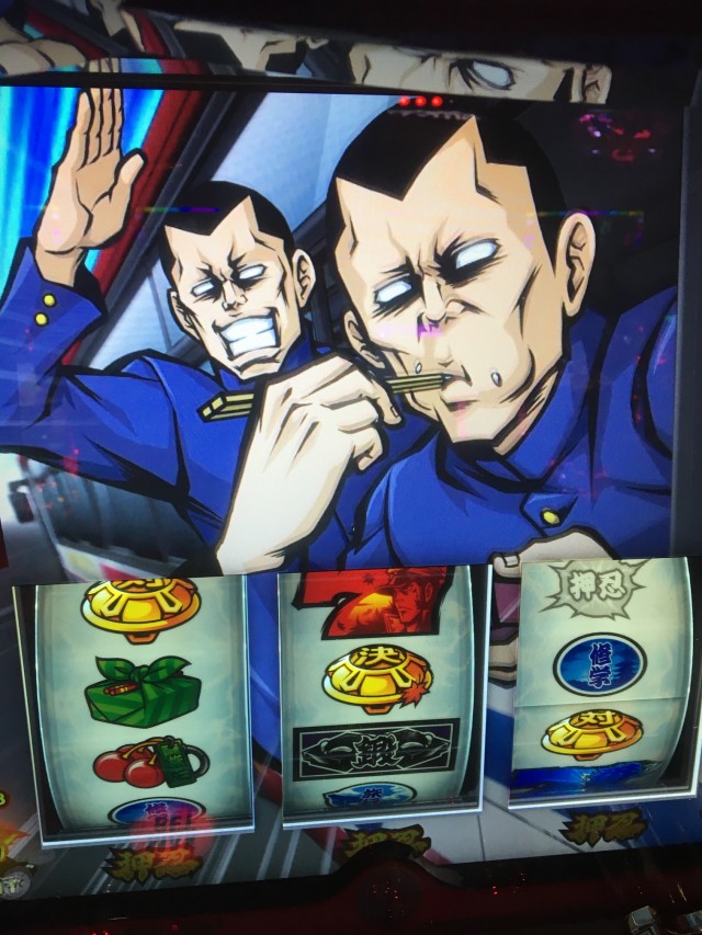 そこから番長3の島へ、なんでも聞いたところ既に2台設定5濃厚(設定1,3,5,6で出現する)金閣寺画面が出ているとのこと。