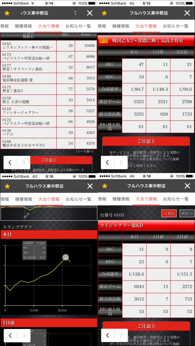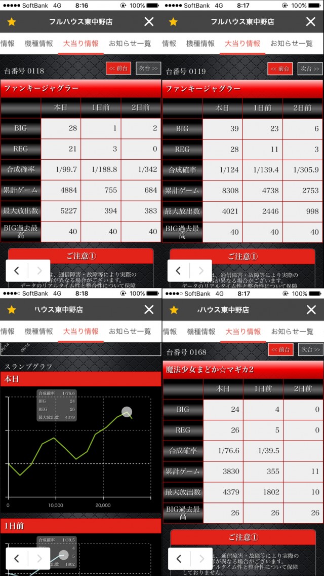 閉店以降のデータはこんな感じ~ファンキーなどは並びで入っていた模様ですね、片方は途中から回されだして超出てましたねw