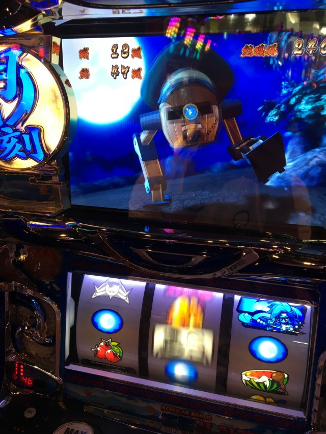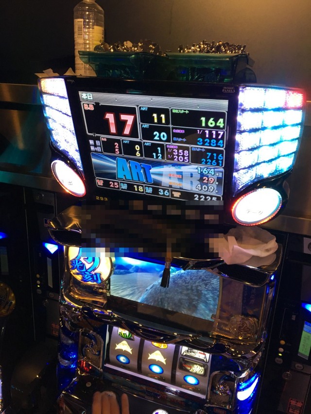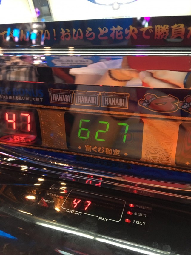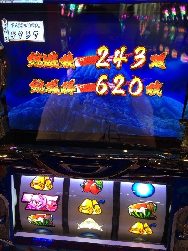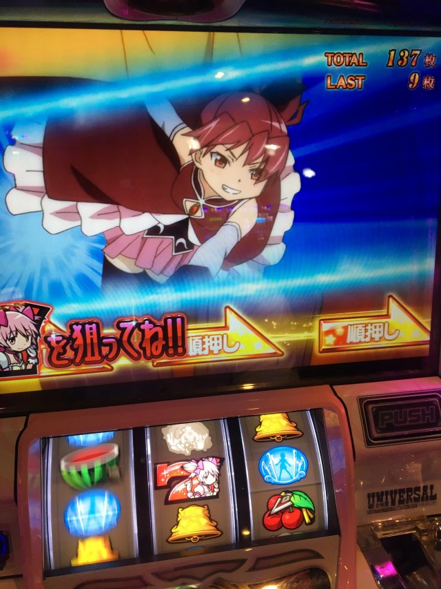 本来なら左リールに白バーを狙ってピンク7を滑らせるべきだったのですけどね~